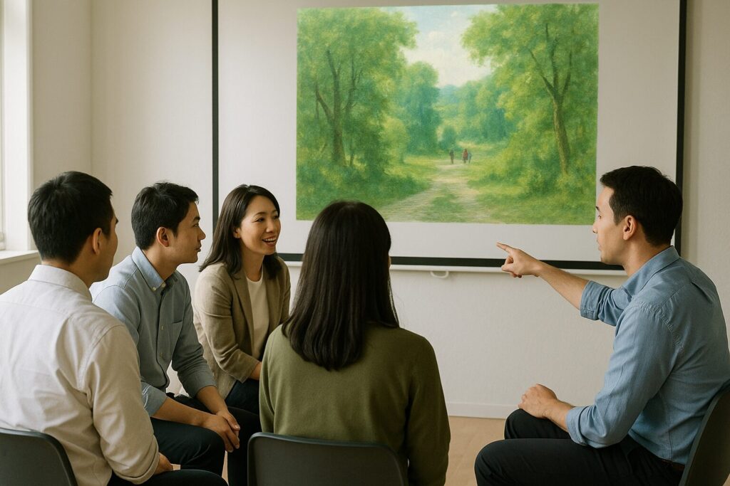同じ絵を見ても、見える世界は人それぞれ違います。この対話を通じて、発想力、想像力、観察眼が磨かれていくのです。さらに、意見の違いや価値観の違いを認め合う経験が、チーム内の相互理解を深め、柔軟な思考を育てていきます。